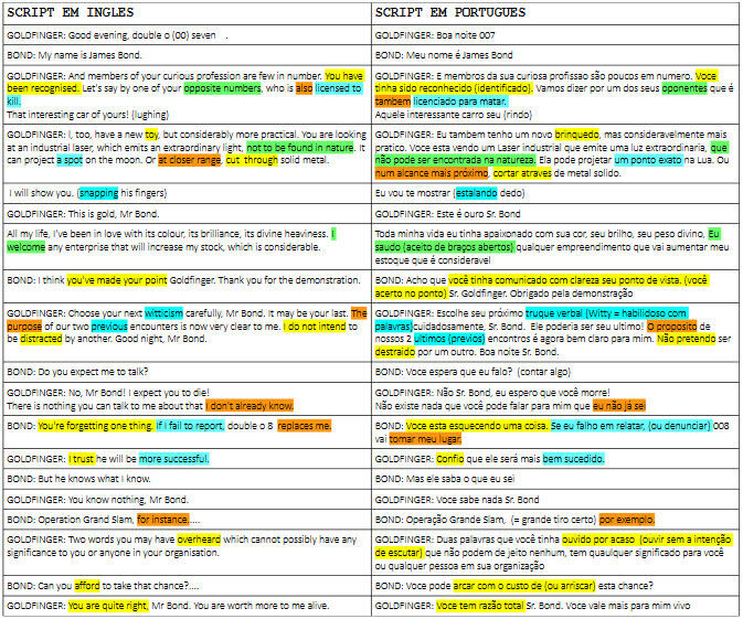 No Speedy English nos implementamos um processo chamado APRENDIZAGEM MULTI SENSORIAL, ou seja, uma aprendizagem que envolve todos seus sensos. Nos fizemos isso através de ensaiar os scripts dos filmes mentais (novelas e filmes de Hollywood acompanhadas com seus scripts lado ao lado, inglês Português. (Veja um exemplo embaixo com um trecho do filme Goldfinger). Com Speedy English você vai aprender numa forma intuitiva e não numa forma fria que é a mais popular e igualmente ineficaz forma para aprender inglês. Isso nos fazemos através dos 5 aceleradores mentais incluídos em seu curso - Eles vão fazer vocês avançar numa velocidade 5X a 7X maior!